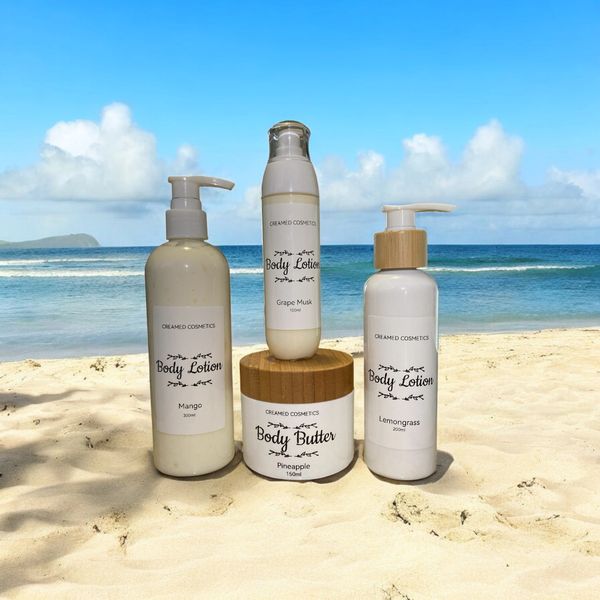 We also offer a variety of finishes body butter for the dryer season and lotion for the hot summer. Each of our products is made with sustainably sourced ingredients both locally and internationally from certified vendors. Our commitment to reducing waste and carbon emissions also makes our packaging reusable. We know you guys will love and enjoy our skincare products.